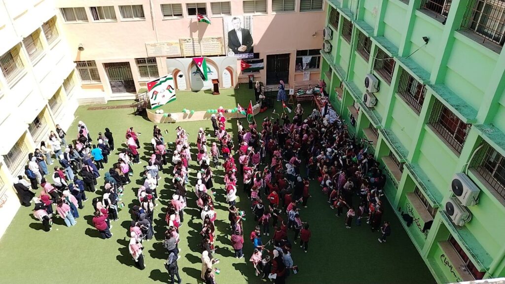 رفرف ياعلم الحرية فوق الهامات النشمية تفديك قلوب عربية قد نالت شرف الحرية بتوجيه من مديرة المدرسة الفاضلة سهير بلاونه قامت مشرفة المكتبة أريج حمااد بعمل حصة تعبيرية مع الطلبة الصغار نهدف من خلالها غرس حب العلم والوطن في قلوب أطفالنا وذلك بمناسبة الأعياد الوطنية ويوم العلم الاردني نحتفل بها تعبيرا عن الفخر والإعتزاز بالعلم ونعزز من خلالها الإنتماء الوطني وغرس معاني الولاء والإنتماء في نفوس الأجيال كل عام والوطن وانتم بالف خير .